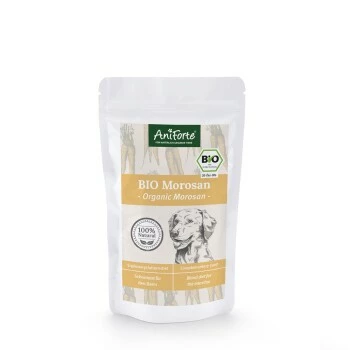 b>AniForte Bio Morosan ist eine hochwertige Ergänzung mit Rohstoffen aus biologischem Anbau. Frei von synthetischen Zusätzen jeglicher Art versorgen die natürlichen Zutaten Deinen Liebling mit wertvollen Nährstoffen für eine gesunde Verdauung und ein verbessertes Wohlbefinden. Das schmackhafte Ergänzungsfuttermittel erfreut sich bei Hunden einer hohen Akzeptanz.