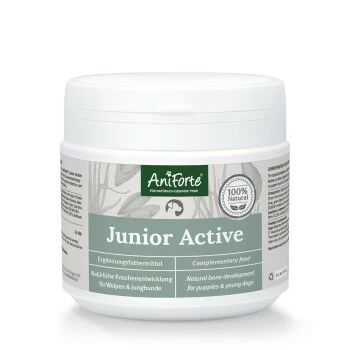 Unsere spezielle Kombination aus den im AniForte Junior Active enthaltenen Rohstoffen kann dazu beitragen die natürliche Knochenentwicklung – insbesondere von Welpen ab der 12. Woche und jungen Hunden bis zum 2. Lebensjahr – auf natürliche Weise zu unterstützen.