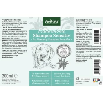 Das AniForte® Fellharmonie Shampoo Sensitiv spendet der Haut Feuchtigkeit und sorgt für ein glänzendes und geschmeidiges Fell, ohne die Haut zu entfetten und ohne dabei ihren natürlichen pH-Wert zu zerstören.