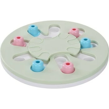Ein unterhaltsames Spiel für dich und deinen Hund. Verstecke die Leckerlis unter den hohlen Plastikklappen, die dein Liebling anschließend suchen soll. Er wird schnell lernen, dass er mithilfe seine Nase / Pfoten die Kappen, sowie das Element in der Mitte verschieben, um an seine Belohnung zu kommen.