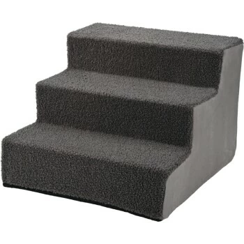 Die graue Haustiertreppe ist mit weichem Plüschstoff bezogen und eignet sich ideal zur Schonung des Bewegungsapparates bei Welpen und Kitten oder älteren und kranken Vierbeinern mit Rücken- oder Gelenkschmerzen. Die niedrige Stufenhöhe der drei Stufen und die stabile Konstruktion der Treppe erleichtert deinem Haustier das Überwinden höherer Absätze. Zudem ermöglicht sie das selbstständige Erreichen des Lieblingsplatzes, des Sofas oder den Ein- und Ausstieg aus dem Auto ohne zu springen und schont somit die Gelenke deiner Fellnase.