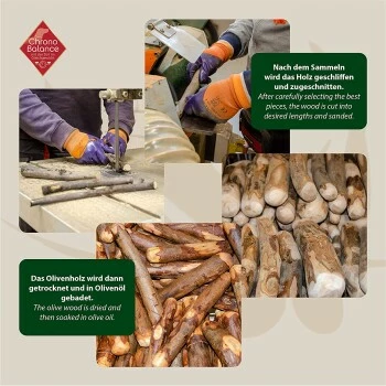 Das ChronoBalance Kauholz aus 100% natürlichem Olivenholz kommt aus Olivenbaum-Plantagen in Italien, wo es von Hand gefertigt, geschliffen und in extra nativem Olivenöl getränkt wird.