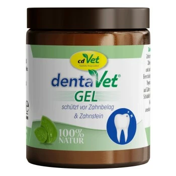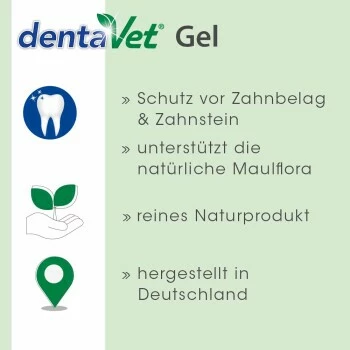 dentaVet Gel, die schonende Zahnpflege für Ihr Tier. Auch bei Hunden sollte eine regelmäßige Zahnpflege selbstverständlich sein. Ebenso wie beim Menschen, können sich bei ihnen Plaque und Zahnstein bilden. Zudem haben mangelnde Zahn- und Maulpflege oft Zahnfleischentzündungen sowie Maulfäule zur Folge.