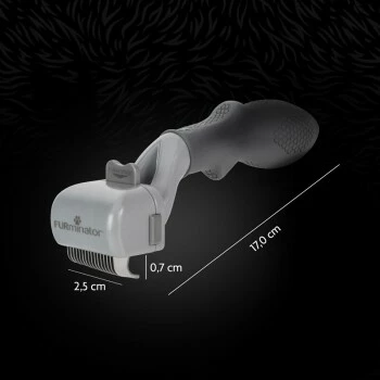 Verwenden Sie den FURminator verstellbaren Entfilzer nur nach Anleitung. Verfilztes Fell kann Ihrem Haustier Schmerzen bereiten, und je länger es im Fell belassen wird, desto schwieriger ist es zu entfernen. Der Entfilzer verhindert schlimmere Verfilzungen und entfernt sie komplett aus dem Fell.