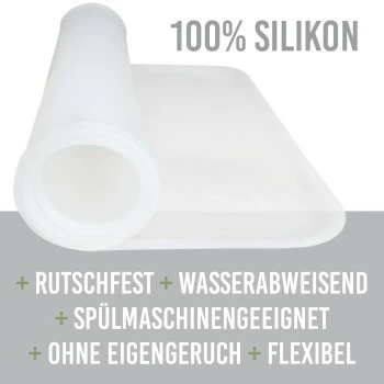 Die KaraLuna Basic Napfunterlage besteht aus qualitativ hochwertigem und langlebigem Silikon und ist sehr einfach zu reinigen. Die Silikonunterlage kann bei Bedarf in der Spülmaschine gereinigt werden. Durch den hohen Rand der Napfunterlage bleiben Wasser und Futterstückchen einfach auf der Futtermatte. Zudem weist die Unterlage eine sehr hohe Rutschfestigkeit auf. Die KaraLuna Silikon Futterunterlage ist in 2 Größen erhältlich und daher für Katzen und Hunde aller Größen geeignet. Wähle die richtige Größe je nach Größe Deines Vierbeiners: Auf die kleine Fressnapf Unterlage (48×30 cm) passen 2 – 3 kleine Näpfe. Bei größeren Näpfen, Trinkbrunnen oder Futterautomaten empfehlen wir eine große Futternapf Unterlage (60×40 cm).
