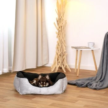 Dieses formschöne Hundebett ist besonders weich und bietet Ihrem Vierbeiner einen gemütlichen Schlaf- und Rückzugsplatz. Durch die modernen und warmen Farben lässt sich das Haustierbett besonders gut in jede Wohnsituation integrieren. Das Hundekissen ist wendbar und somit in 2 verschiedenen Designs nutzbar. Die Reinigung des Hundeplatzes kann durch Handwäsche erfolgen. Wir bieten Ihnen verschiedene Größen und Farben zur Auswahl. Die genauen Maße können Sie den Bildern entnehmen.