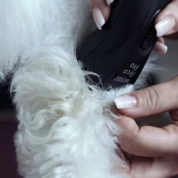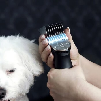 Scheren / Trimmen: Das Tier soll individuell nach seinem Felltyp und der Rasse gepflegt werden. An die gewünschte Schnittlänge herantasten, zum Beispiel mit unterschiedlichen Aufschiebekämmen, von groß nach klein, vorerst an einer verdeckten Stelle testen.