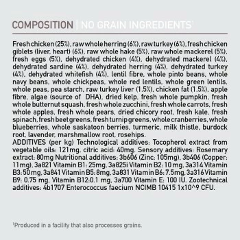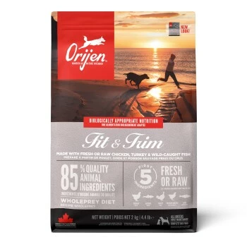 Eine protein- und ballaststoffreiche Ernährung fördert eine schlanke Muskelmasse, eine perfekte Kondition und ein gesundes Körpergewicht. ORIJEN™ Fit & Trim enthält schmackhafte Zutaten, wie Huhn, Truthahn, Wildfisch und Eier, die alle an unsere Küche geliefert werden. Gefriergetrocknete Leber hat einen ganz besonderen Geschmack, den dein Hund lieben wird, und versorgt ihn gleichzeitig mit allen notwendigen Nährstoffen, um glücklich, gesund und widerstandsfähig zu bleiben. Alle Rezepturen von ORIJEN bestehen aus 85%* hochwertigen tierischen Zutaten, mit zwei Drittel frischen oder rohen** Zutaten, 25% frischem Obst und Gemüse und 0% Getreide, Kartoffeln, Tapioka und pflanzlichen Proteinkonzentraten.