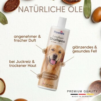 Pawlie’s Langhaar-Hundeshampoo ist speziell für Hunde mit langem Fell konzipiert und bietet eine umfassende Pflege gegen Geruch und Juckreiz. Die kraftvolle Formel reinigt das Hundefell bis in die unterste Fellschicht, entfernt Schmutz, Parasiten wie Flöhe, Milben und Läuse sowie loses Haar und bekämpft gleichzeitig den unangenehmen Fellgeruch. Das im Shampoo enthaltene Arganöl und Biotin verleihen dem Fell eine flauschige Weichheit und verhindern Verfilzungen.
