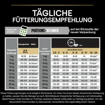 Bei PURINA PRO PLAN wendet unser Team von Ernährungswissenschaftlern und erfahrenen Tierärzten modernste Wissenschaft an, um die fortschrittlichste und effizienteste Nährstoffkombination für dein Haustier zu entwickeln. Diese Rezepturen helfen gezielte Vorteile wie eine hohe Verdaulichkeit und eine hohe Nährstoffaufnahme zu bieten, um die natürlichen Abwehrkräfte und die langfristige Gesundheit deines Haustieres zu unterstützen. Die Zutat Nummer 1 sind immer hochwertige Stücke von Huhn, Lamm, Lachs, Truthahn oder Rind, die tiefgefroren wurden, um wichtige Nährstoffe einzuschließen, und perfekt gegart für einen köstlichen Geschmack.