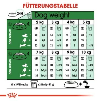 Außerdem unterstützt der angepasste Energiegehalt von Royal Canin Mini Adult 8+ kleine Hunde dabei, ein optimales Gewicht zu halten. Da kleine Hunde in der Regel einen hohen Energiebedarf haben, ist der hohe Energiegehalt dieses Futters an den Bedarf und den Lebensstil kleiner Hunde angepasst.