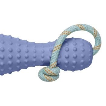 Nachhaltiges Spielzeug aus echtem Naturkautschuk für interaktives Zerren und Apportieren. Das Band aus einem Kernmantel-Seil erleichtert das Aufheben / Werfen und bietet einen „sabber freien“ Griff.