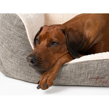 Dick gepolsterter Rand – Der Rand des Hundebettes ist extradick und hoch gepolstert. Neben der tiefen Liegefläche bietet er so, je nach Größe des Hundes, eine schöne Auflagefläche für den Kopf.
