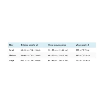 | Größe | Länge | Brustumfang | Nackenumfang | Wasserbedarf |