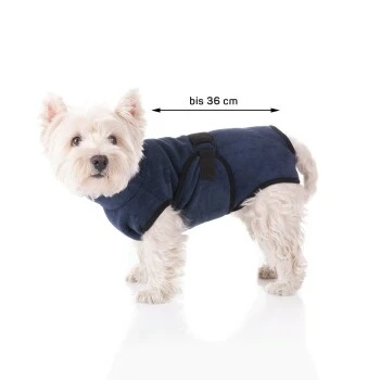 Bitte messen Sie nach und bestellen lieber eine Größe kleiner, da die Badmäntel großzügig geschnitten sind, für Hunde mit viel Fell