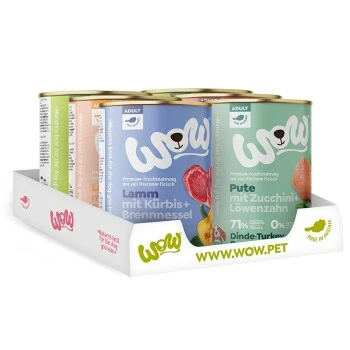 - 5x Sorten: 2x Rind, 1x Lamm, 1x Pute, 1x Lachs, 1x Wild
